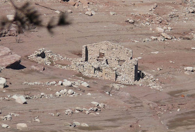 La inusual sequera d’aquest any ha posat al descobert bona part de l’antic poble de Sant Romà de Sau i n’he fet fotografies de masies de les que encare en queden restes, algunes de les quals ja les he posat al blog i d’altres que les hi he de posar més endavant, però del que era el poble pròpiament dit i que serien les cases agrupades entorn de l’esglesia ja pràcticament no en queda res. Per aquesta raó les imatges que poso en aquest capítol volen ser un record del que havia estat el poble poc abans de ser colgat, quan ja era un poble condemnat en el que no s’hi havia fet res en molt anys i molta gent ja n’havia fugit.